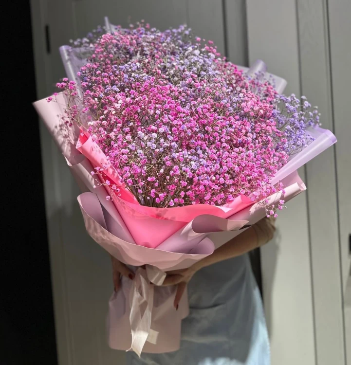 Этот букет из ярких розовых и сиреневых гипсофил подарит нежное и романтичное настроение. Цветок тщательно подобраны и украшены элегантной упаковкой, которая подчеркнет их изысканный вид. Подарите эту композицию своему близкому человеку и наполните его жизнь нежностью и красотой.